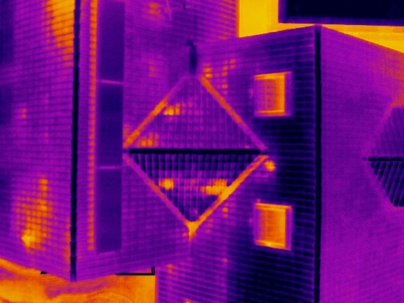 Typisch für ältere Gebäude zeigt sich hier eine schlecht gedämmte Heizungsnische – bedingt durch die meist dünnere Wandstärke und oft fehlende oder unzureichende Dämmung in diesem Bereich.